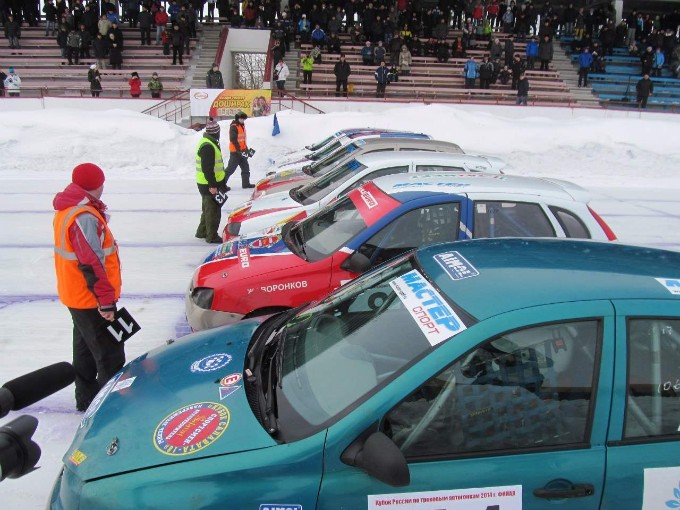 Под восторженные крики трибун начались основные заезды – пилоты стартовали по таблице 16-ти, т.е. каждый участник ехал с каждым, стартуя при этом с каждой из шести дорожек ипподрома. Надо сказать, что лед был подготовлен качественно, несмотря на теплую погоду. Шестнадцать заездов по четыре круга держали в напряжении болельщиков, которые могли увидеть класс российских пилотов. К слову, многие зрители приходят на трибуны ради того, чтобы увидеть столкновения, перевороты автомобилей, но нынче одним из показателей мастерства пилотов стала безаварийная, корректная и честная борьба за победу. Все это просматривалось в каждом заезде. Пилоты соблюли минимум вылетов, столкновений, «ушей», вместо этого показав красивое прохождение поворотов, обгоны, рев моторов, идущих на своем пределе.