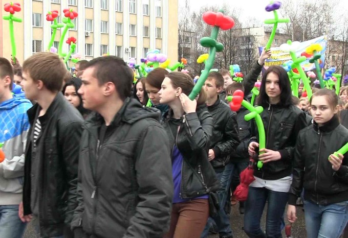 Так звучит традиционный Первомайский лозунг. 1 мая вся страна отмечала этот праздник - широко, с размахом. Демонстрация началась в одиннадцать часов утра. На центральных улицах города было шумно и многолюдно. Дежурили сотрудники полиции.