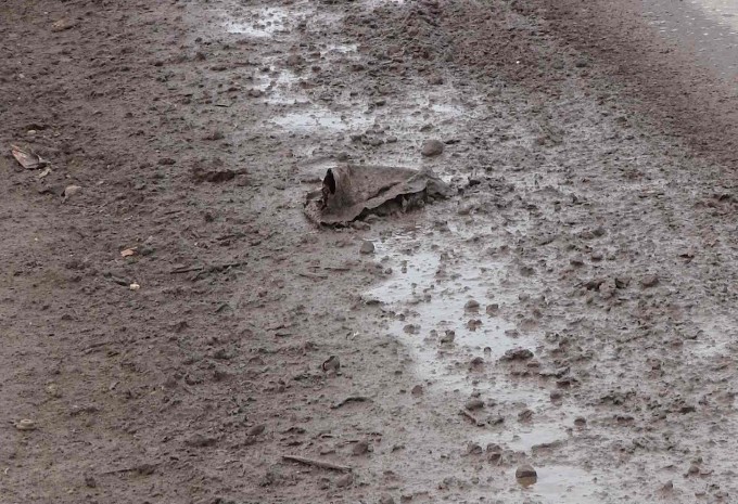 Дорога рядом со свалкой Чайковского района превратилась с наступлением весны в одно из самых грязных в Чайковском место. Нет, здесь не проходил грязевой сель и не дождь размыл дорогу.