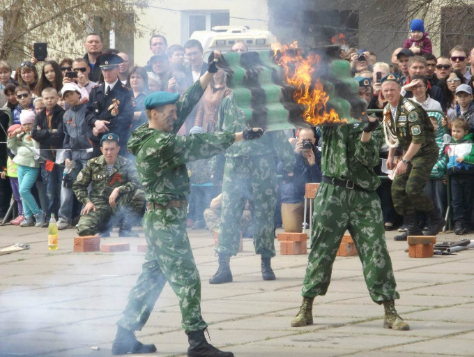 В программу показа вошел рукопашный бой, боевая сцена разведывательной группы, демонстрация владения холодным оружием и стрельбы из огнестрельного оружия. И инструктор парашютной десантной подготовки Сергей Белоусов поведал нам о своем роде деятельности.