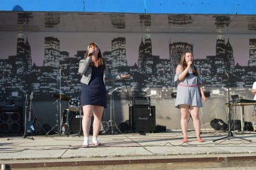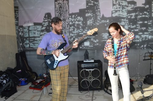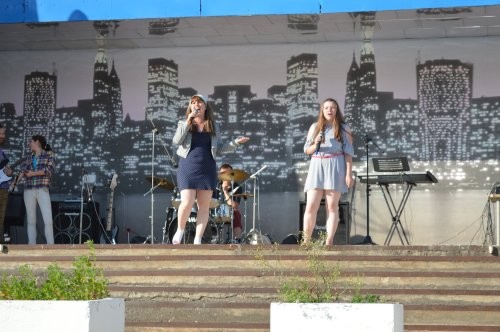 На площади около бывшего кинотеатра "Горизонт" также было весело. Народ подходил сюда, чтобы послушать песни молодых исполнителей. Выступила здесь и группа "Космос", и представители телекомпании "Марк-ТВ".