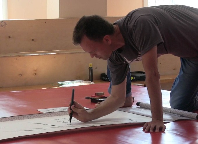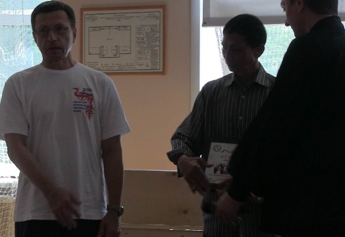 В завершение восьмидневного курса посетители семинара и руководство школы подарили Лю Шао Бин необычнейший подарок - свиток со стихотворением, написанным при нем на китайском языке настоящей черной тушью. Подготовили такой подарок Сергей и Алексей, известные в Перми ценители культуры Востока.