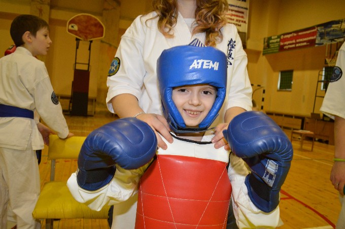 К бою готовится каратист из самой юной возрастной категории спортсменов 6-8 лет