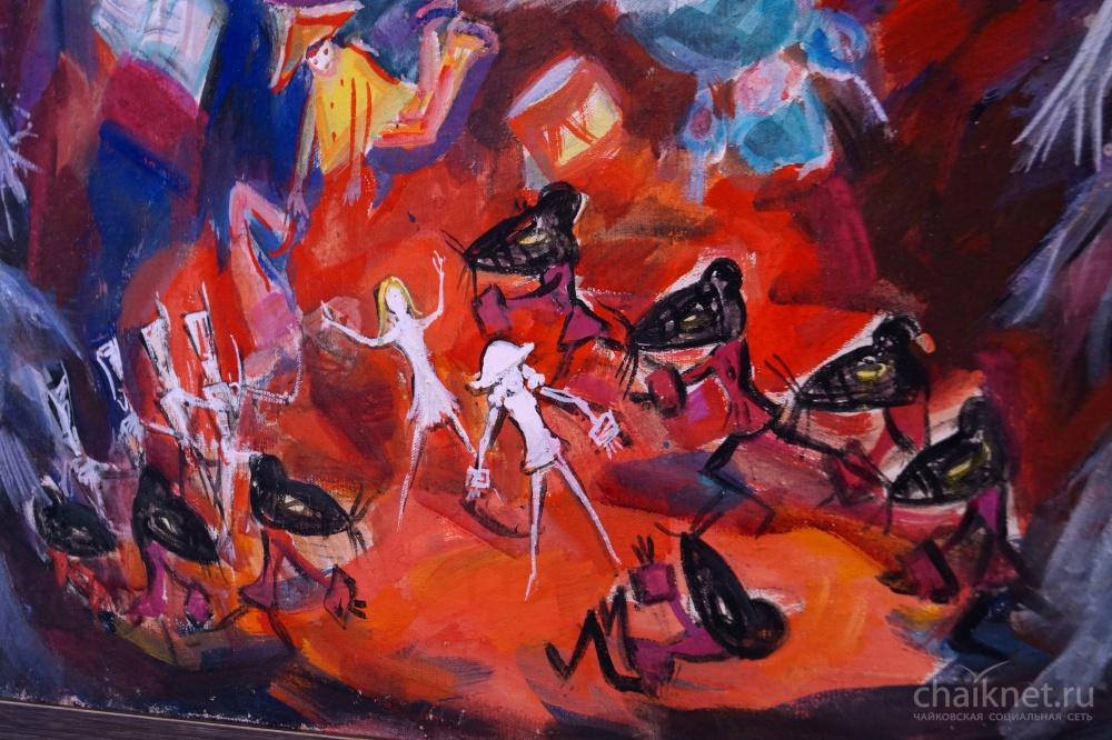 Выставка «Театр П.И. Чайковского», посвящена 175-летию композитора и прибыла в Чайковский из Музея-усадьбы, расположенной в городе Воткинске. На ней не представлены портреты Петра Ильича или прозведения, созданные под впечатлением от них. Здесь все гораздо глубже – речь идет о выставке сценографии. Что это за «зверь»? Это эскизы декораций к бессмертным произведениям Петра Ильича – «Пиковая дама», «Спящая красавица», «Щелкунчик», «Евгений Онегин».