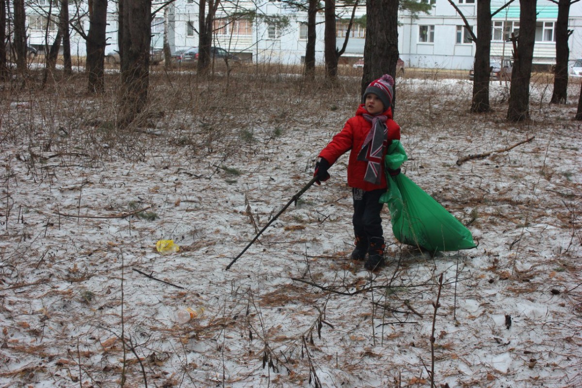 Несмотря на то, что не весь снег стаял, мусора в перелеске, который является проходным путем для многих жителей данного микрорайона, было предостаточно. Организаторы предложили участникам субботника собирать мусор в два пакета: в зеленый – пластиковые и стеклянные бутылки, в черный – весь остальной мусор. В дальнейшем зеленые пакеты были увезены на пункт вторсырья, то есть на переработку.