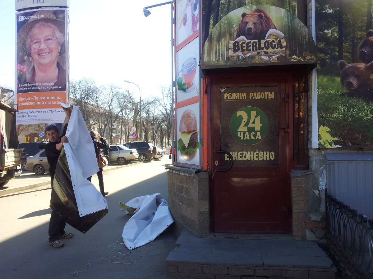 Этот вопрос задал сотрудникам городской администрации владелец пивных баров «Beerloga», во время демонтажа наружной рекламы с изображением медведей и кружек с пенным напитком.