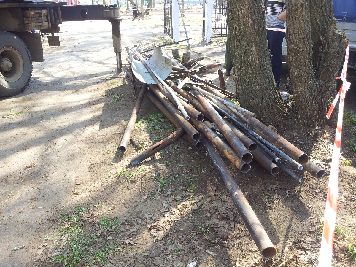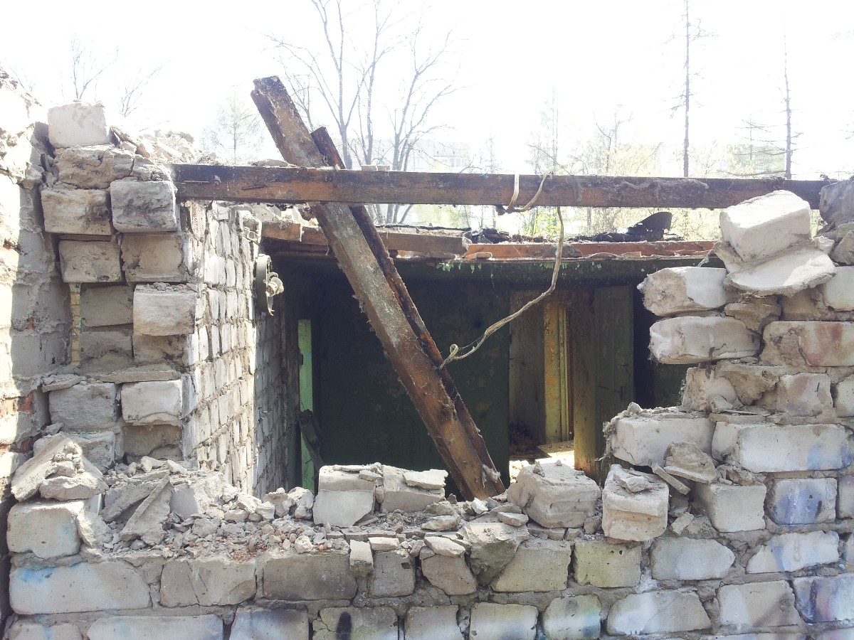 К сожалению, 2 мая работы по демонтажу здания бывшей «пирожковой» так и не стартовали. Но 5 мая все местные СМИ были уведомлены о том, что данные работы запланированы на 6 мая, а пятого числа здесь будет проводиться внутренние работы по отключению коммуникаций. Мы решили понаблюдать за этими работами, хотя рабочие признались, что ожидали прихода журналистов лишь завтра. Так что нам удалось побывать на обоих днях демонтажа «пирожковой».