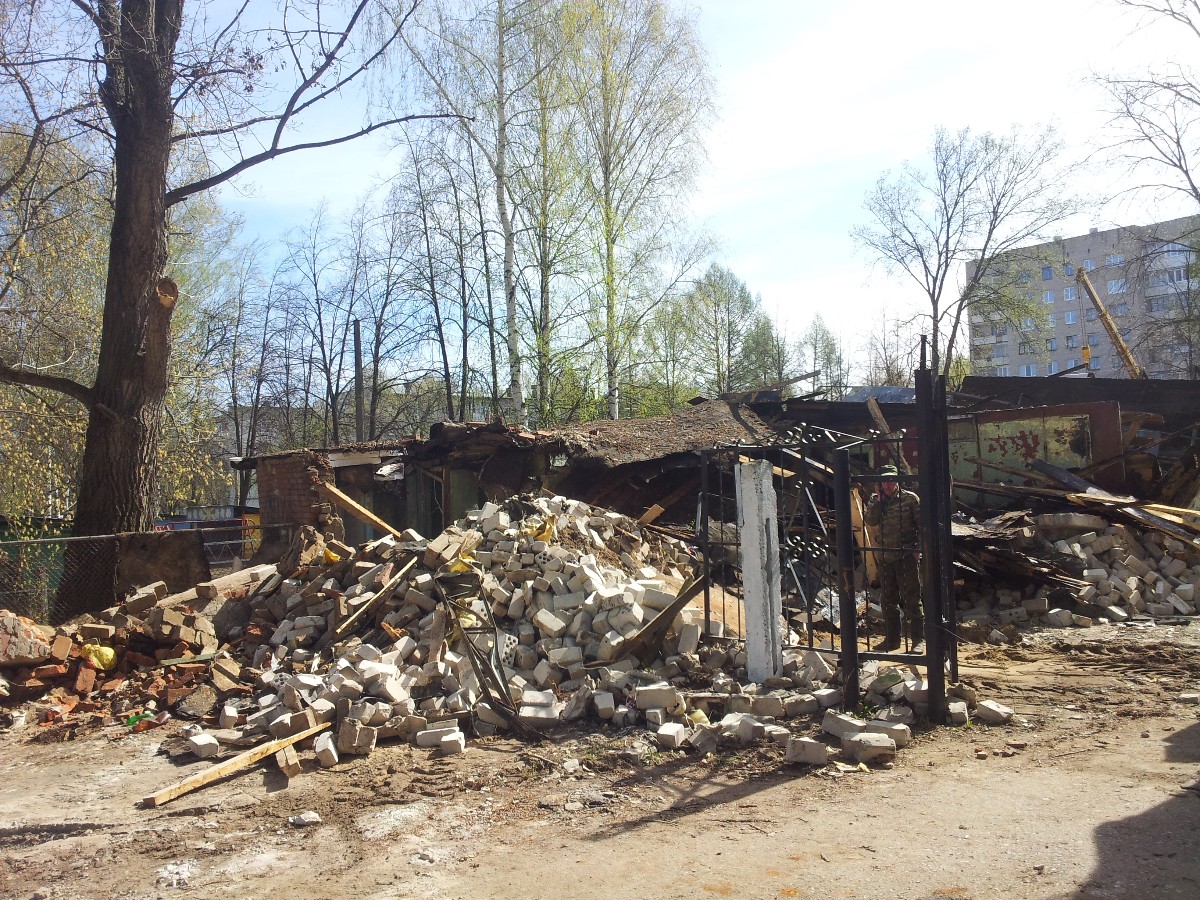 6 мая на место прибыла уже тяжелая «артиллерия», так что в считанные минуты от большей части здания осталась лишь груда кирпичей и прочего строительного мусора. Вокруг стояли клубы пыли, а рабочие не теряя ни секунды времени ликвидировали завалы. Тем временем на место прибыл первый заместитель главы городского поселения по ЖКХ и градостроительству Михаил Новоселов.