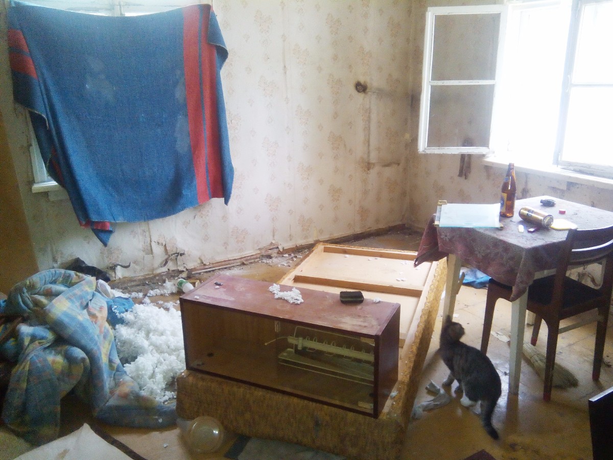 Бывшие владельцы квартир, а также посторонние люди, срезают и уносят батареи, трубы, пытаются выпиливать целые балки, что грозит обрушением всего дома.