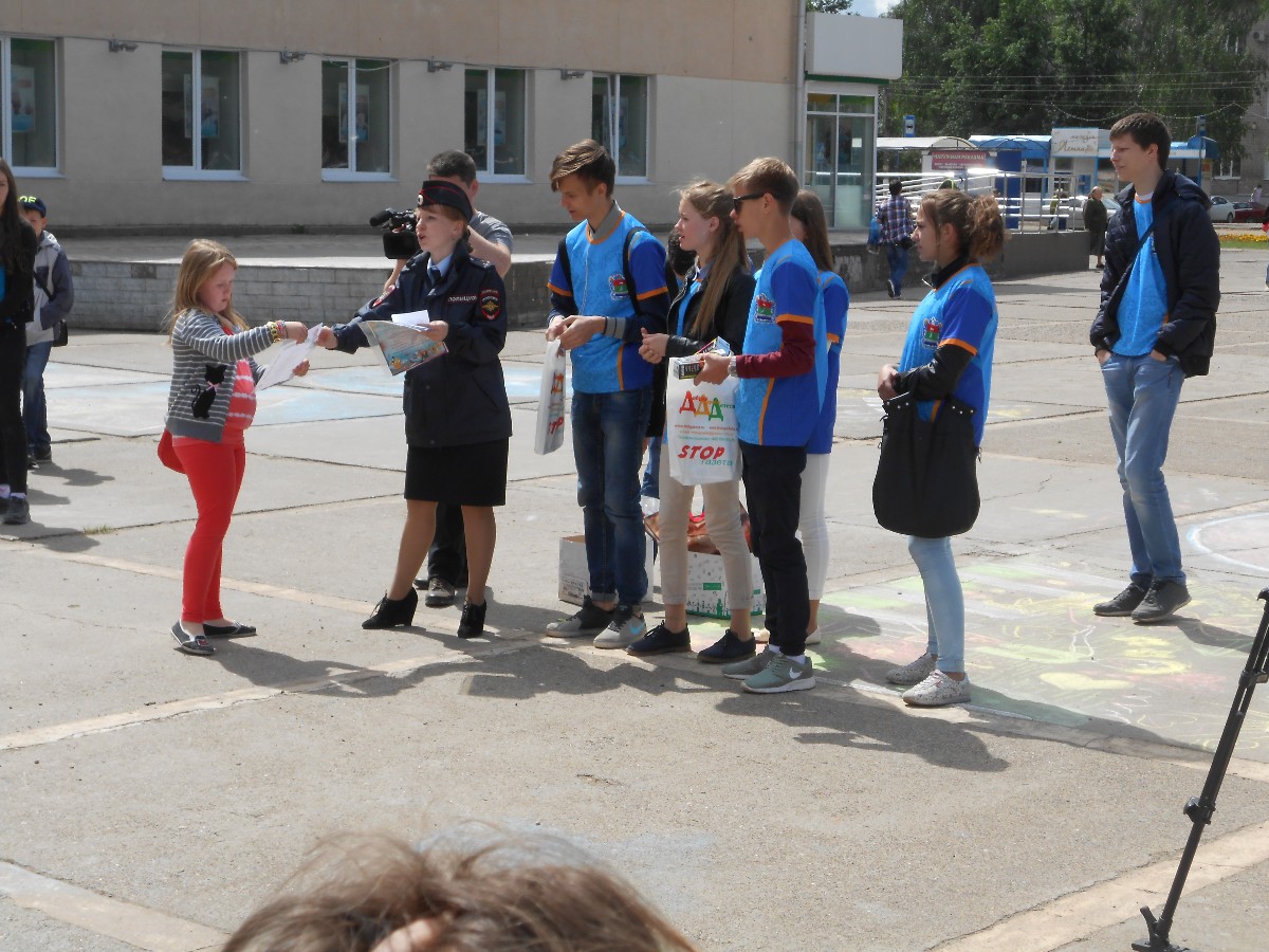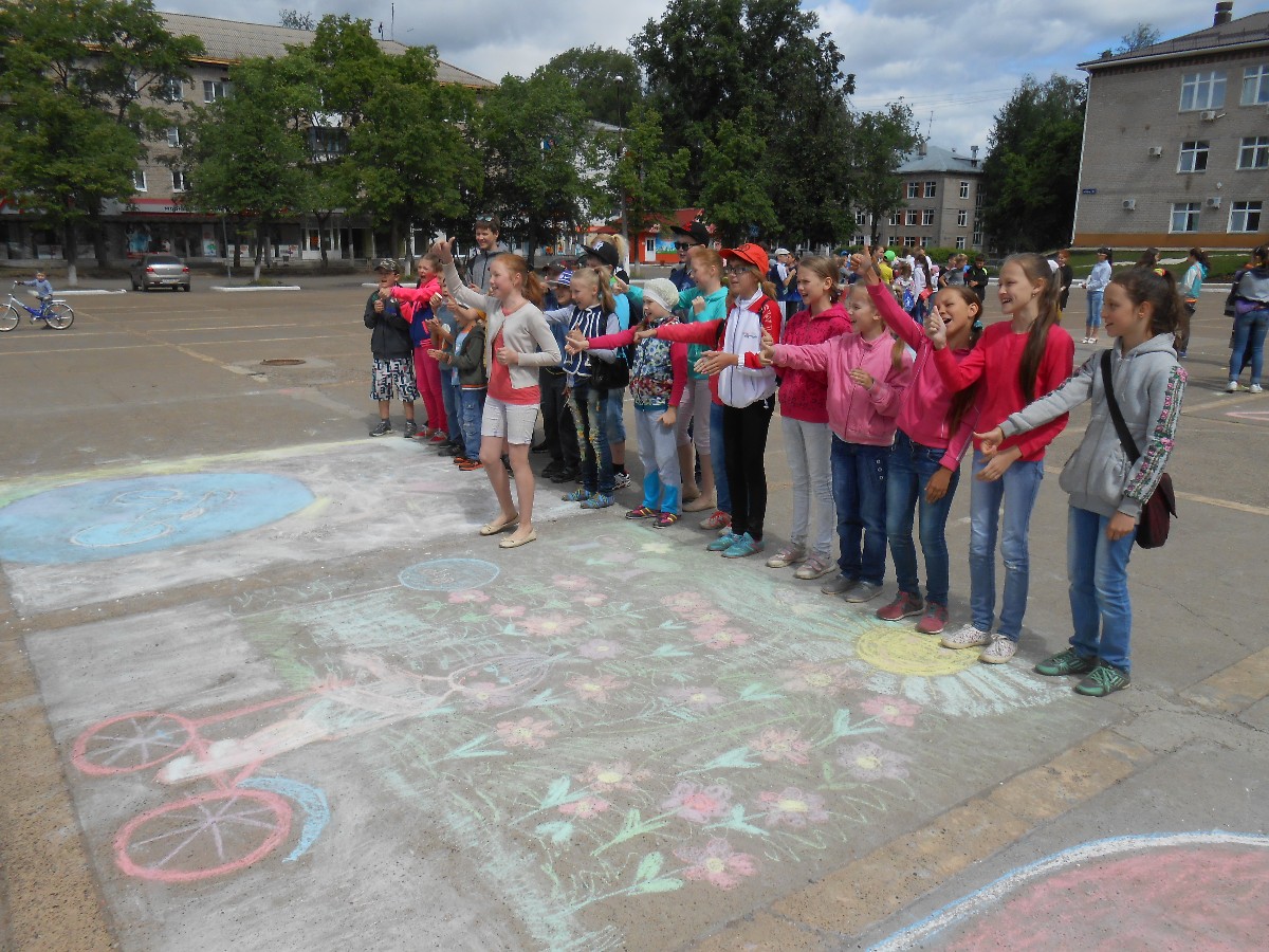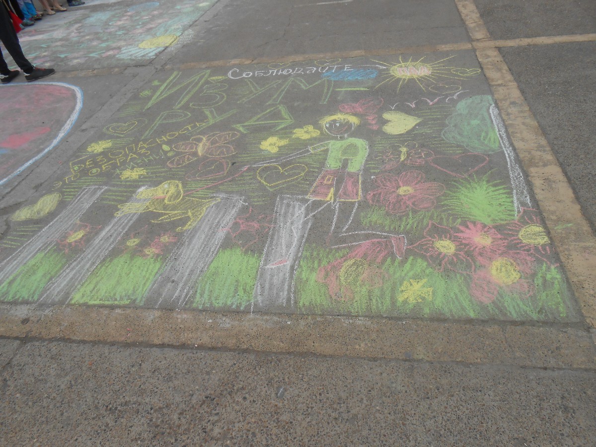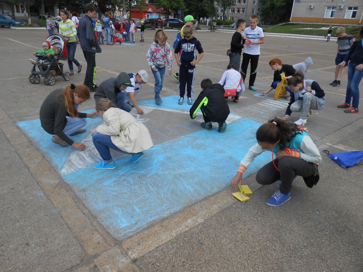 9 июня на площади Карла Маркса прошёл конкурс рисунков на асфальте «Радуга дорожных знаков». Участникам было предложено изобразить дорожные знаки и тематические рисунки к ним.