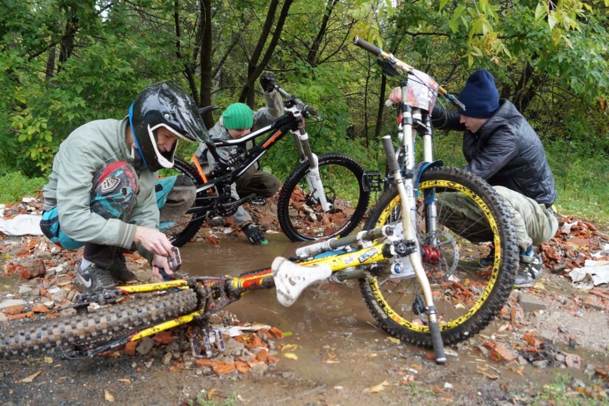 Естественно, что даже для мини-даунхилла, не говоря уже о самом даунхилле, не подойдет обычный городской или недорогой горный велосипед. Здесь стоимость байков может измеряться сотнями тысяч. Именно поэтому, а также из-за высокой опасности даунхилл не пользуется большой популярностью, например в Чайковском этой велодисциплиной увлекаются не более десяти человек. Собственно, пятеро из них и выехали на открытый чемпионат Ижевска по мини-ДХ, правда, в конечном итоге в гонке поучаствовали лишь двое. Всему виной – дождь, превративший соревновательную трассу в месиво из воды и песка.