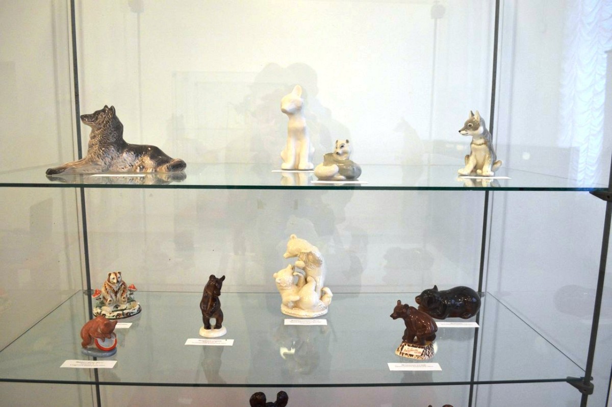 Представленные на выставке «Среди фарфоровых зверей» работы поистине напоминают зоопарк, здесь собраны: медведи, рыси, олени, лисы, лоси, рыбы, птицы и другие животные. Большинство из них – образцы советской анималистической скульптуры, но есть и изготовленные в других странах.