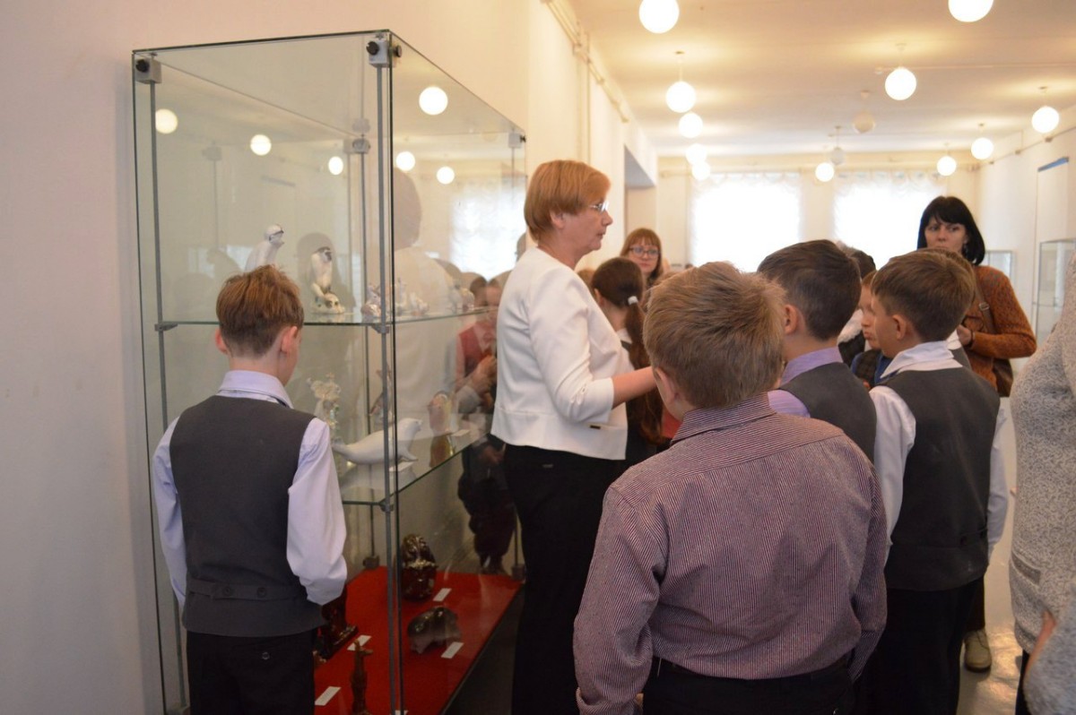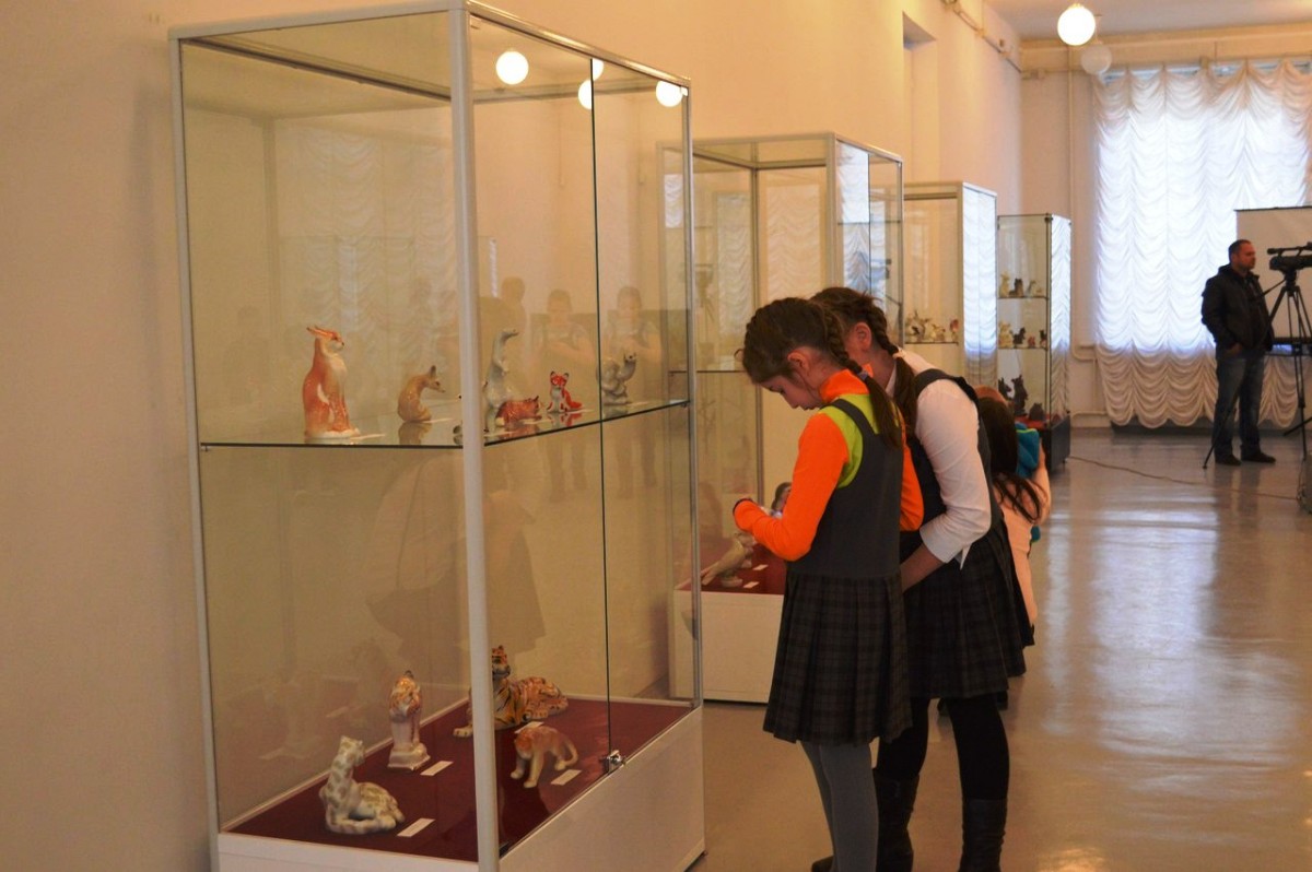 Вернисаж начался с мультфильма, рассказывающего об изготовлении фарфора. Ценителями анималистических скульптур в большей части оказались дети, поэтому такое интересное начало было самым располагающим к дальнейшей экскурсии по экспозиции. Ее провела Наталья Шмыкова – искусствовед с тридцатилетним стажем. Дети были очень заинтересованы этой выставкой, Наталья Сергеевна, рассказывая о выставке, общалась с ребятами, описывала скульптуры, задавала вопросы.