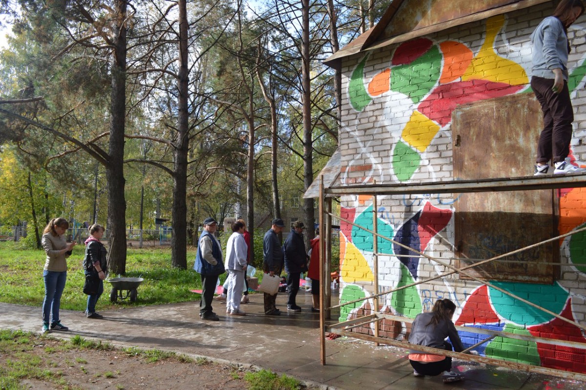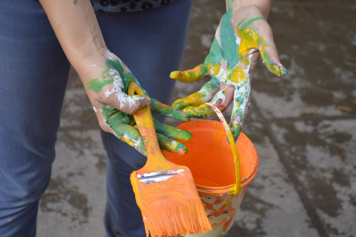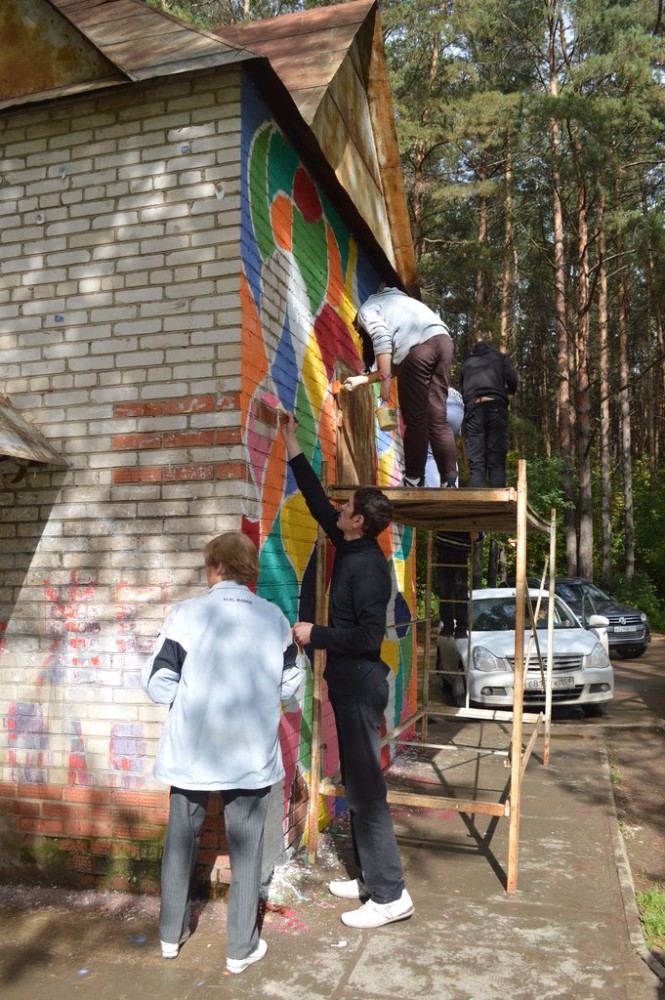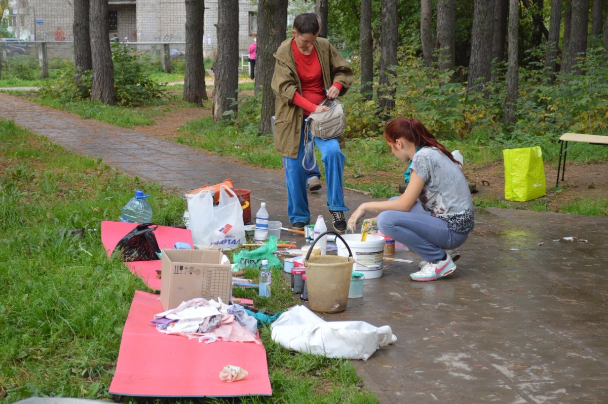 Обстановка была весёлой и творческой: играла музыка, светило яркое солнце, даже пятна разлитой на дорожках краски создавали свою, неповторимую атмосферу.