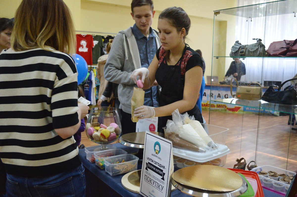 На самой первой атмосферной барахолка первое, что встречало пришедших – музыка и настоящий рай для шопоголиков – вещи, аксессуары и прочие не менее милые сердцу вещицы и… еда. Прямо напротив дверей расположился мини-филиал кондитерской «Маффин хауз», где каждый мог украсить маффин по своему вкусу.
