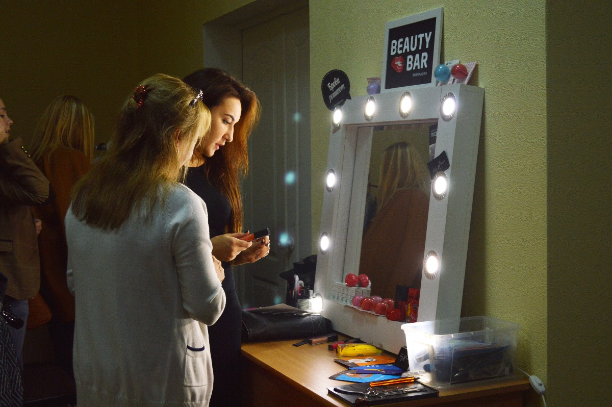 Все оставшееся пространство было заполнено товарами. Во втором зале, помимо всего прочего, трудились визажист и фотограф. На мероприятии присутствовал диджей, создававший приятную атмосферу в зале.