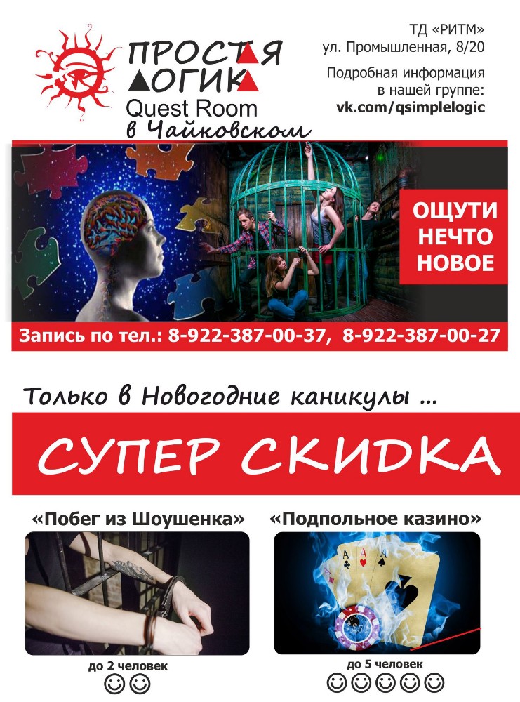 Наверняка вы задумывались, что в Чайковском скучно и некуда сходить? Теперь есть отличный вариант отдыха – QUESTROOM59!