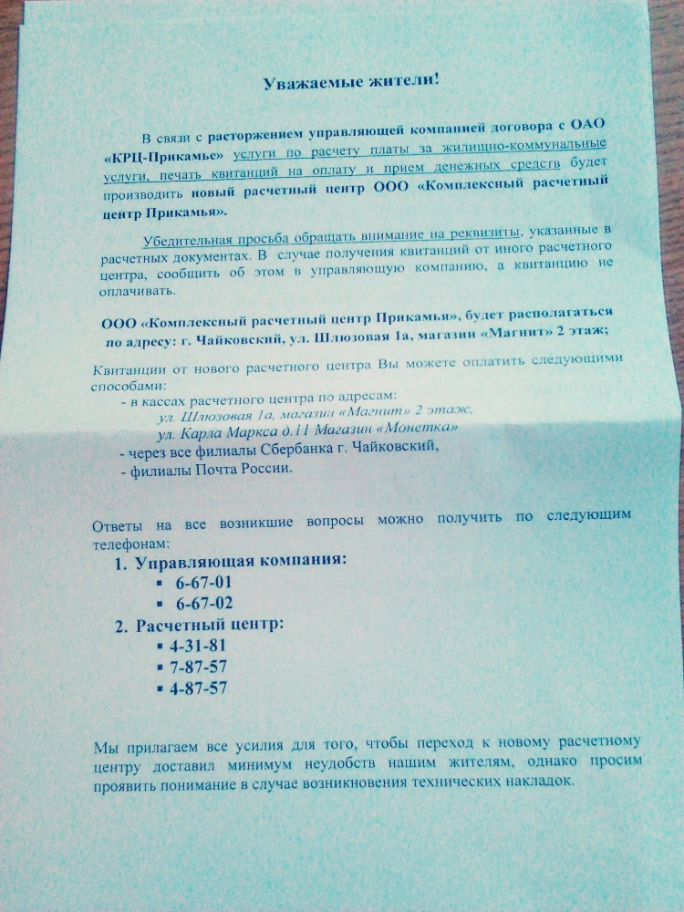 ОАО «КРЦ-Прикамье» или ООО «КРЦ Прикамья» – куда платить?