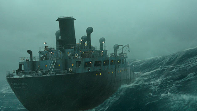 Основных локаций в фильме всего три: танкер «Пендлтон», спасательная лодка во главе с Крисом Пайном и близлежащий город со станцией береговой охраны. Пожалуй, контраст шторма и города – один из самых сильных приемов в фильме. Шторм передан максимально реалистично, ощущение темной бездны, которая скоро поглотит всех, не покидает весь фильм. Сам город заваливает снегом, но в то же время съемки в помещении наполнены теплотой и светом, действие фильма перемещает нас из одной локации в другую, заставляя сердце биться чаще.