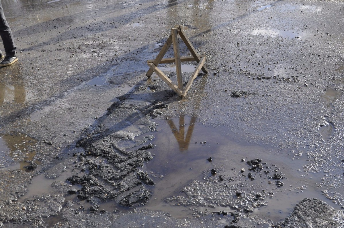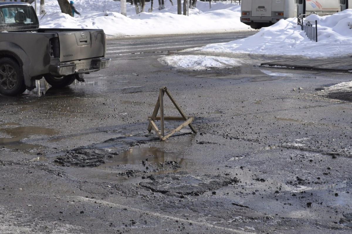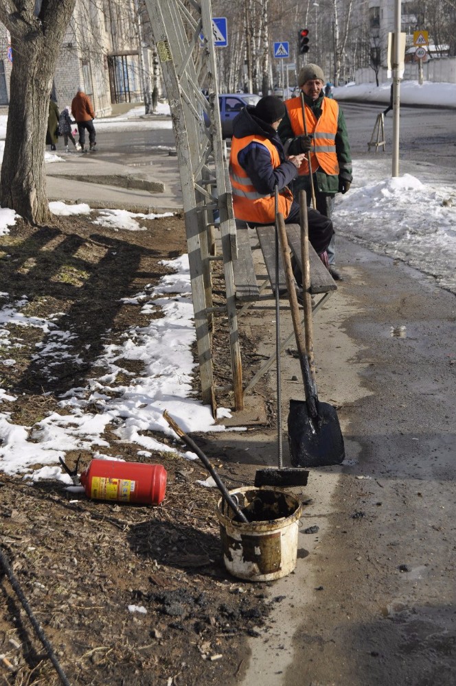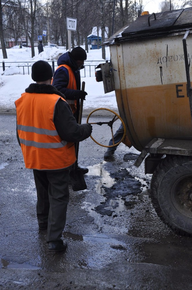 Огородив с десяток ямок и засыпав некоторые из них смесью асфальта и щебня, рабочие устроили перекур, попросив «не снимать фэйсы».