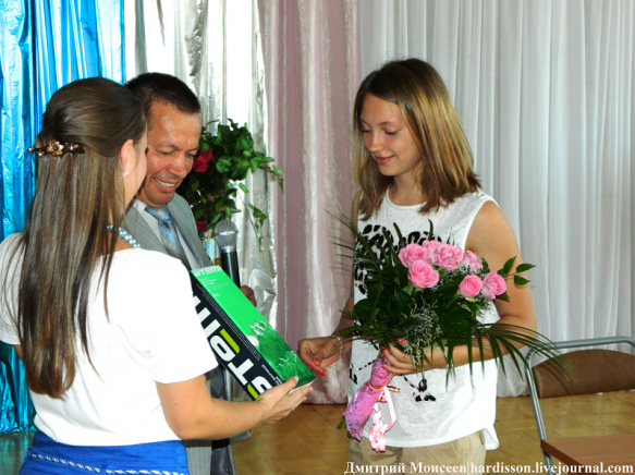 Первым делом Маша поблагодарила присутствующих за то, что за нее «болели» и отметила, что это очень важно для неё. После этого представители администрации подарили спортсменке и ее тренеру памятные подарки и цветы.