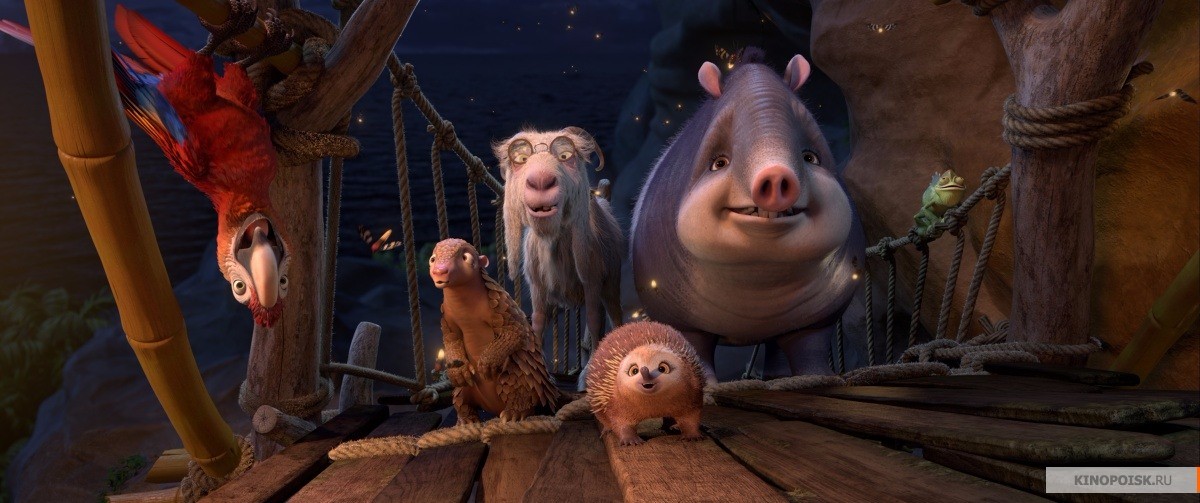 С юмором в картине нет проблем, от попугая, ежихи и козла можно просто валиться со смеху. Плотность шуток и их разнообразие отлично держат детскую аудиторию зала и не дают заскучать. Небольшой спойлер: сценаристы не ограничились только животными и Робинзоном, на экране ваших детей ждут еще и пираты!