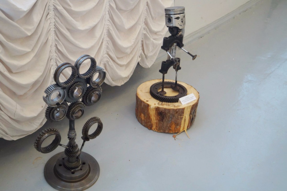 К слову, некоторые работы поразили даже директора галереи Антонину Камышеву. Среди таких работ «цветик-семицветик» и «робот», созданные Николаем Ерошиным из старых автодеталей. Мастер родом из деревни Каменный Ключ. Словом, Николай – настоящий уральский мастер!