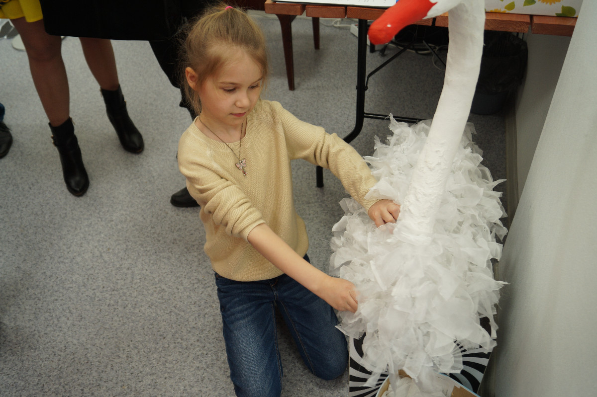 На выходе нам предложили завязать ленточки на белого или черного лебедя, сделав его более пушистым.