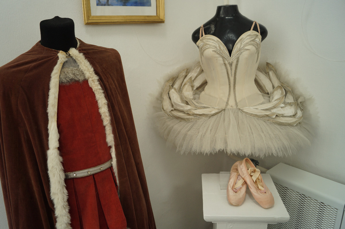 На выставке можно увидеть один из оригинальных костюмов знаменитой балерины Майи Плисецкой и её пуанты.