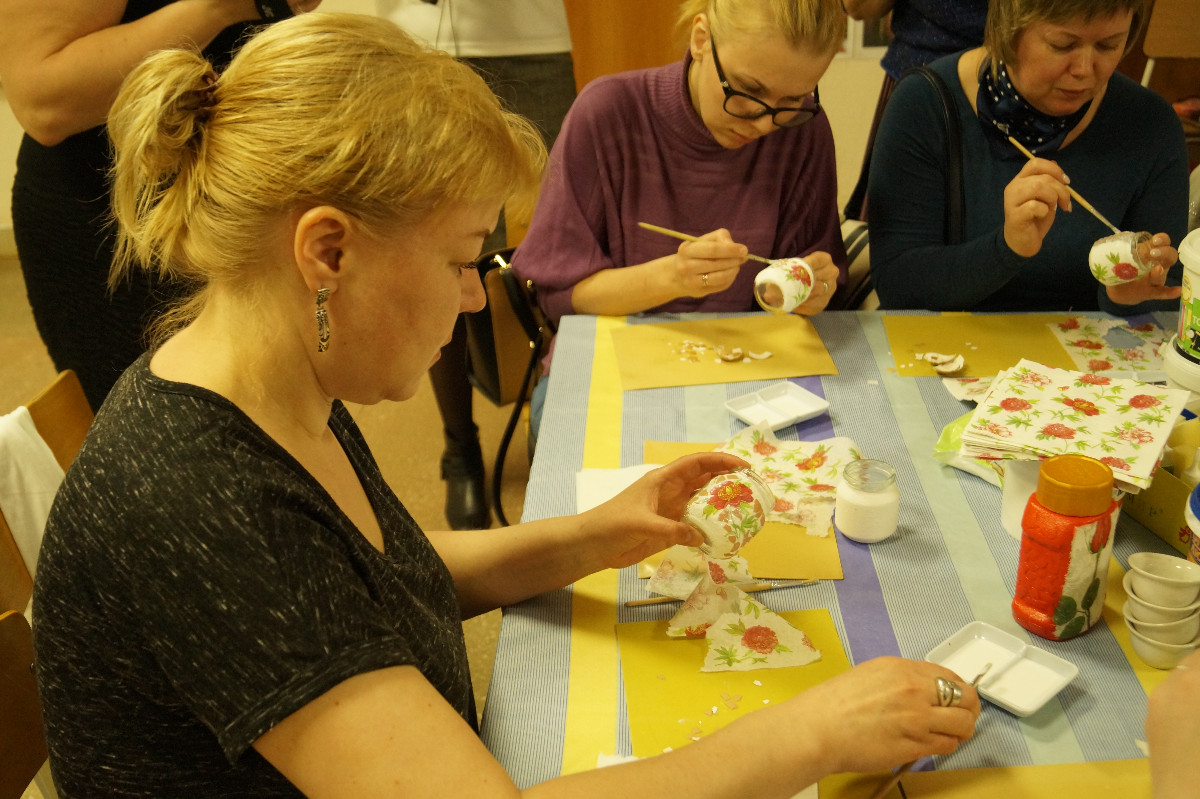На площадке «Очумелые ручки», которая расположилась в просторном холле, все желающие могли стать участником познавательных мастер-классов. Здесь можно было научиться плетению кос, создать кофейное дерево, чудесное пирожное или народную куклу, самостоятельно или совместно с ребенком сотворить необычную поздравительную открытку или заколку для волос. Все эти увлекательные занятия способствуют развитию творческих способностей ребенка, усидчивости, настраивают его на созидание и развивают мелкую моторику.