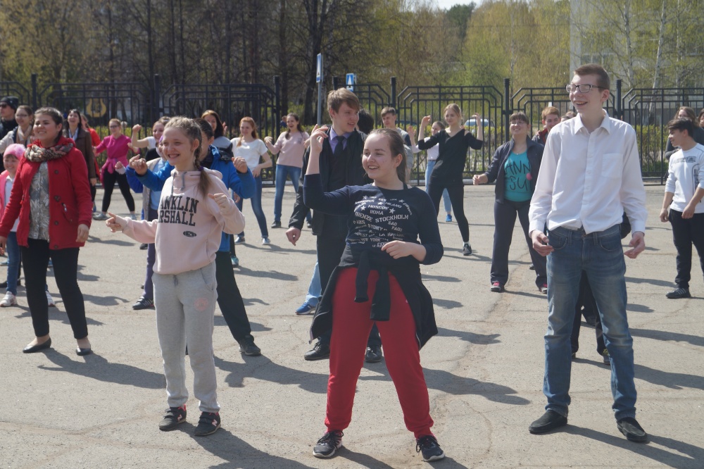 Перед началом флешмоба Болтаева Розалия Ахнафовна и Иван Сергеевич Гусев, руководитель офиса банка «ВТБ», пожелали ребятам оптимизма и вдохновения.