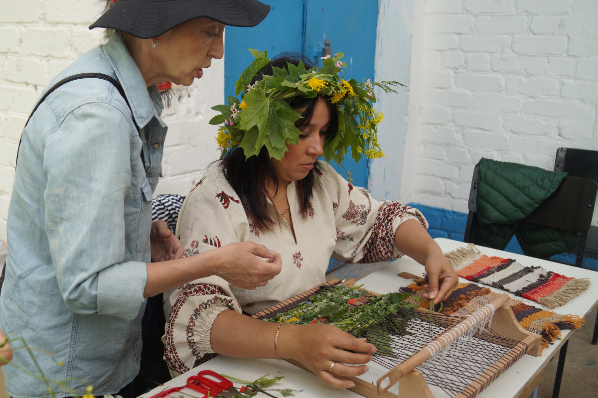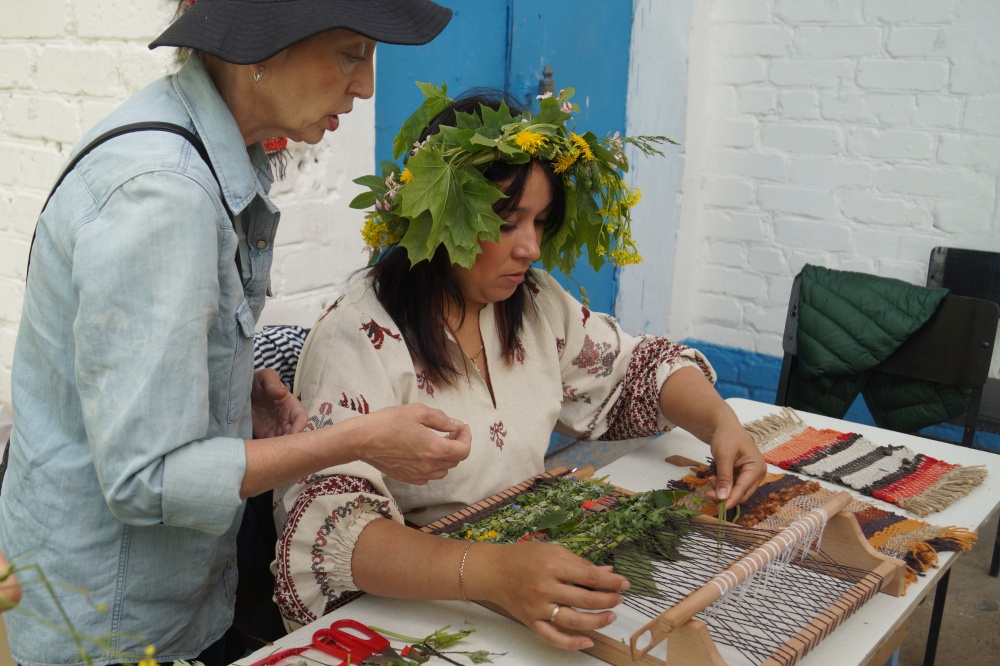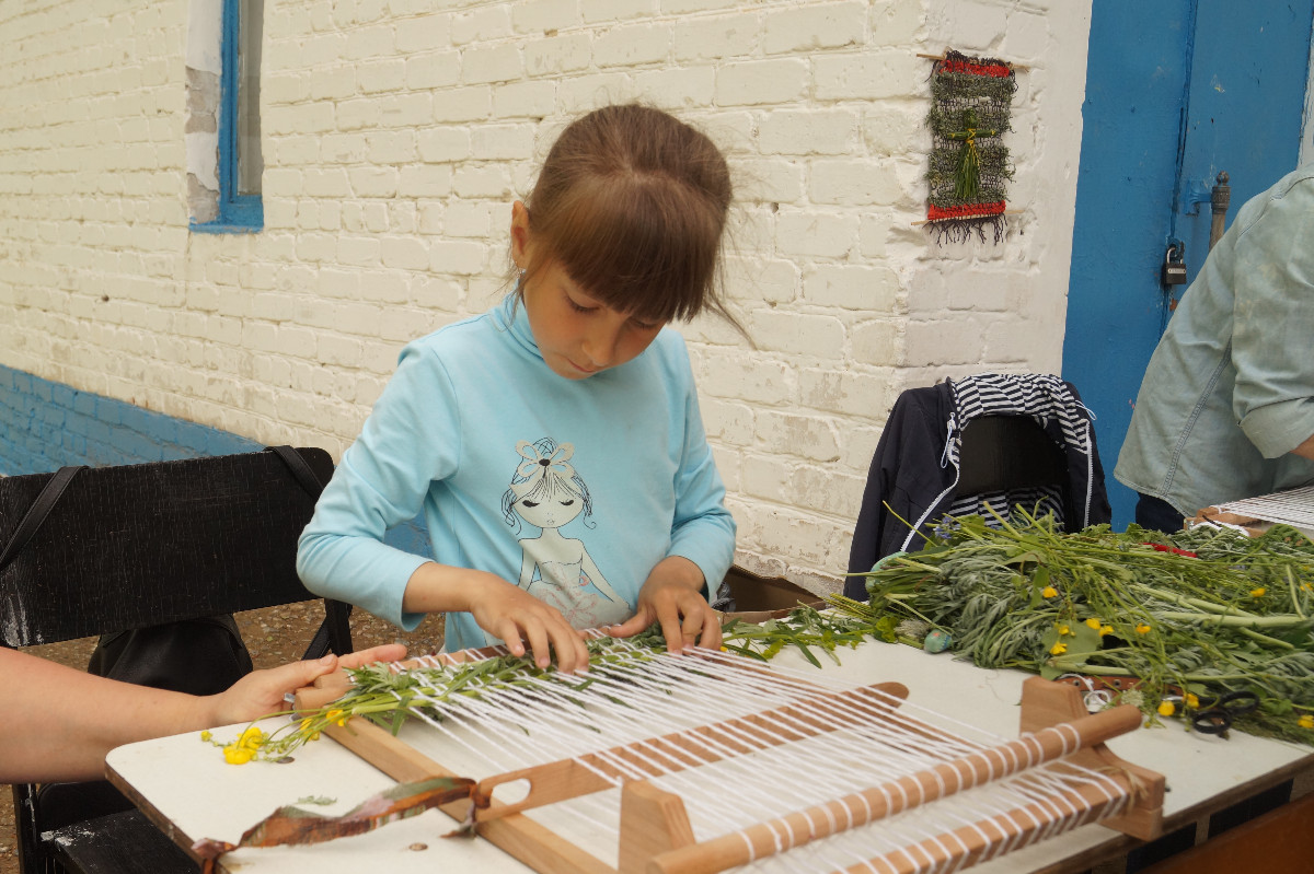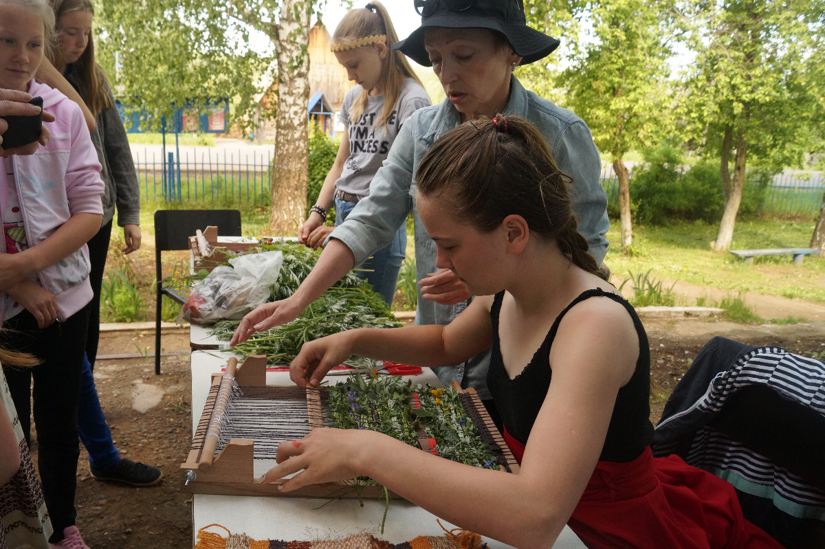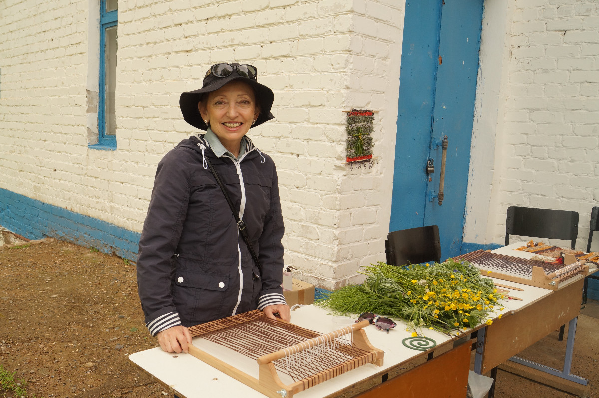 Как только автобус остановился у Дома культуры в селе Уральском, мастерица Татьяна Щеткова первым делом отправилась на луг – собирать траву для своего мастер-класса по ткачеству половичков. «Настольные ткацкие станки позволяют заниматься любимым делом где угодно, на природе в том числе. Увлечение ткачеством возникло относительно недавно. Нашла видеоуроки в Интернете и решила, что смогу научиться», - говорит Татьяна.