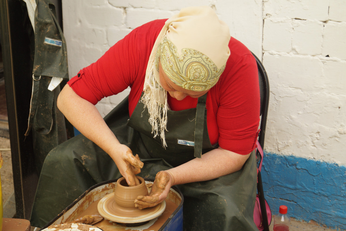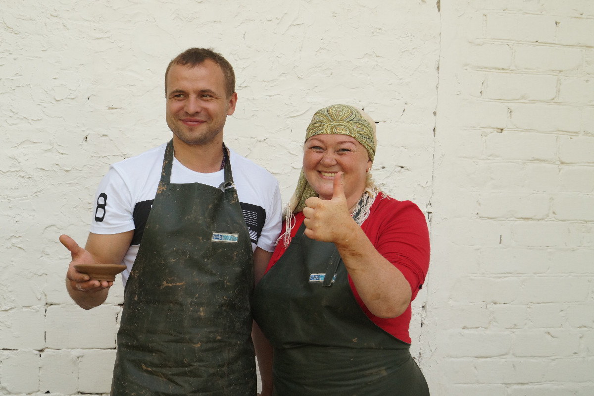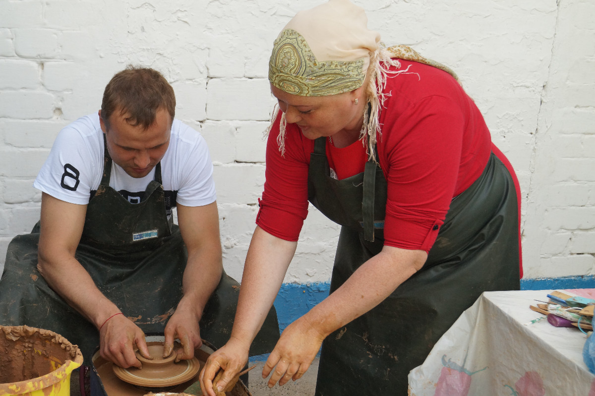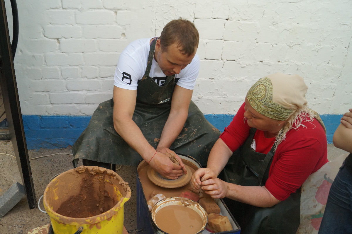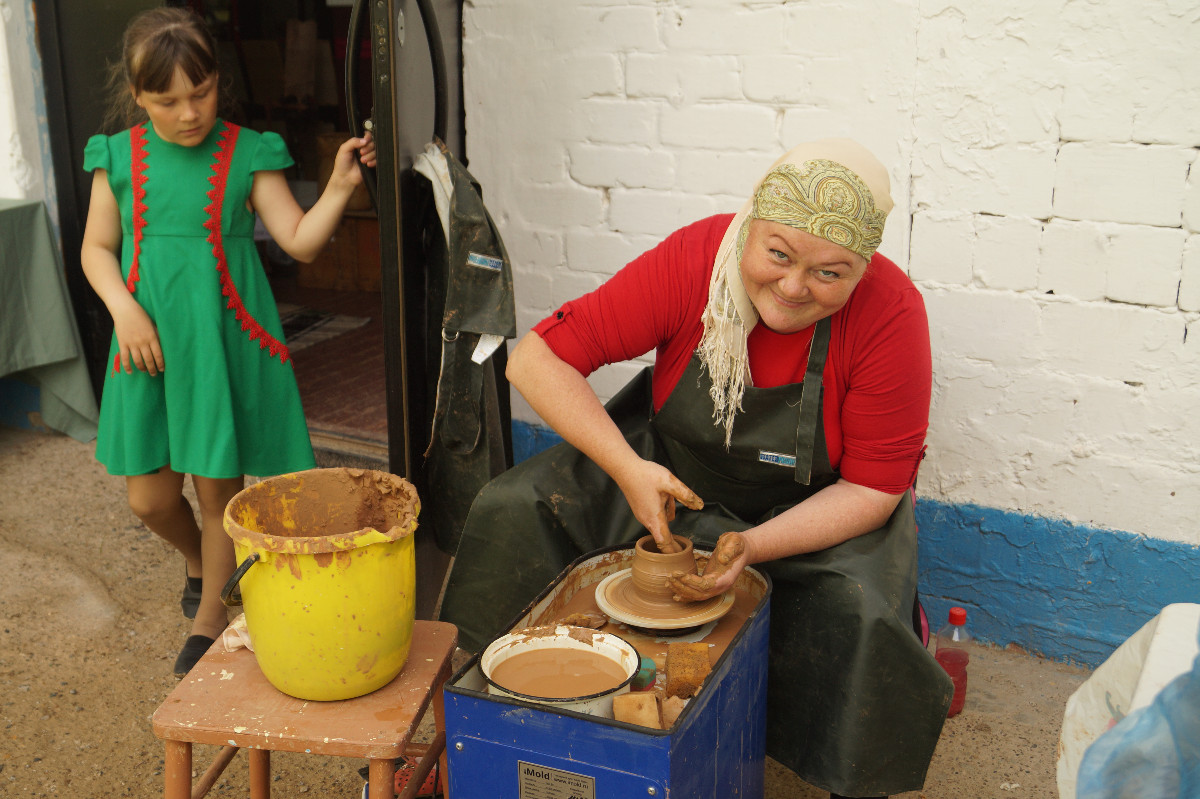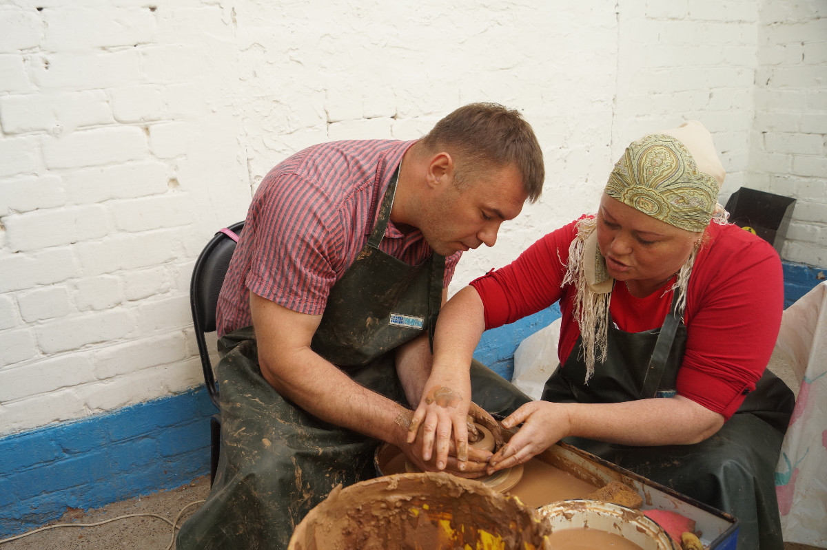 Ещё один природный материал – тёплая и мягкая глина, местная, из Фокинского района - из неё каждый желающий под руководством мастера Татьяны Власовой смог создать небольшой горшочек, тарелку на гончарном круге.