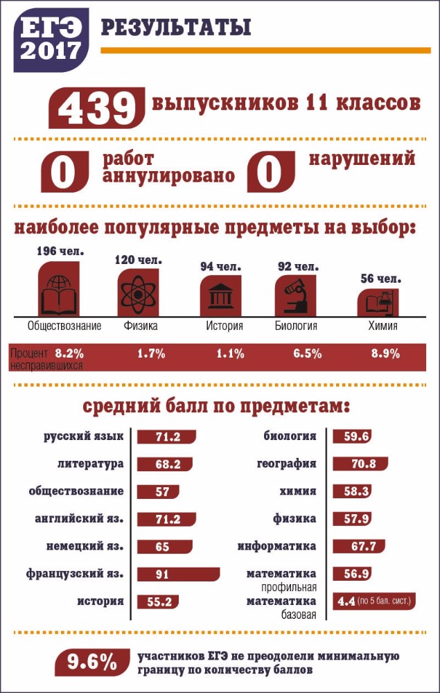 В сравнении с прошлым годом выпускниками-2017 улучшены результаты по пяти предметам: математика профильная, информатика, химия, физика, история.