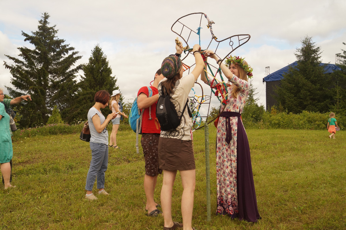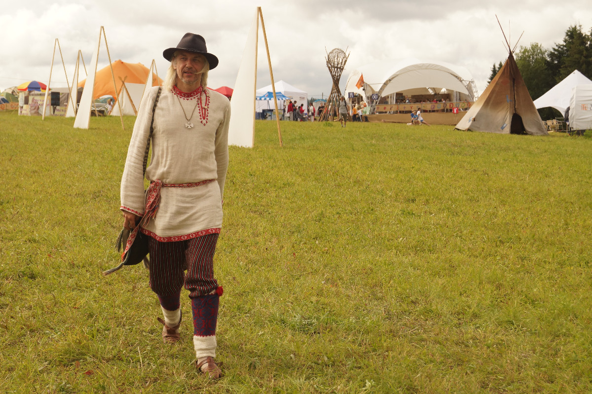 Для того, чтобы лучше прочувствовать дух фестиваля, все желающие могли расположиться на ночлег в эко-легере, который в этом году был разбит неподалеку от входа в этнопарк. Вот и мы поставили тут свою палатку. Здесь специалисты Центра экологического туризма «Зеленый ветер» организовали все необходимое: биотуалеты, питьевая вода, кафе с разнообразной и полезной едой, детская площадка. В лагере царили свои законы и как говорят «своя особая атмосфера»: вечером в баре можно было выпить полезный травяной чай, утром посетить занятия по оздоровительной гимнастике цигун и тай-цзы, а мусор здесь собирался раздельно – все условия, чтобы почувствовать себя в полной гармонии с природой и на трезвую голову испытать искреннюю радость бытия.