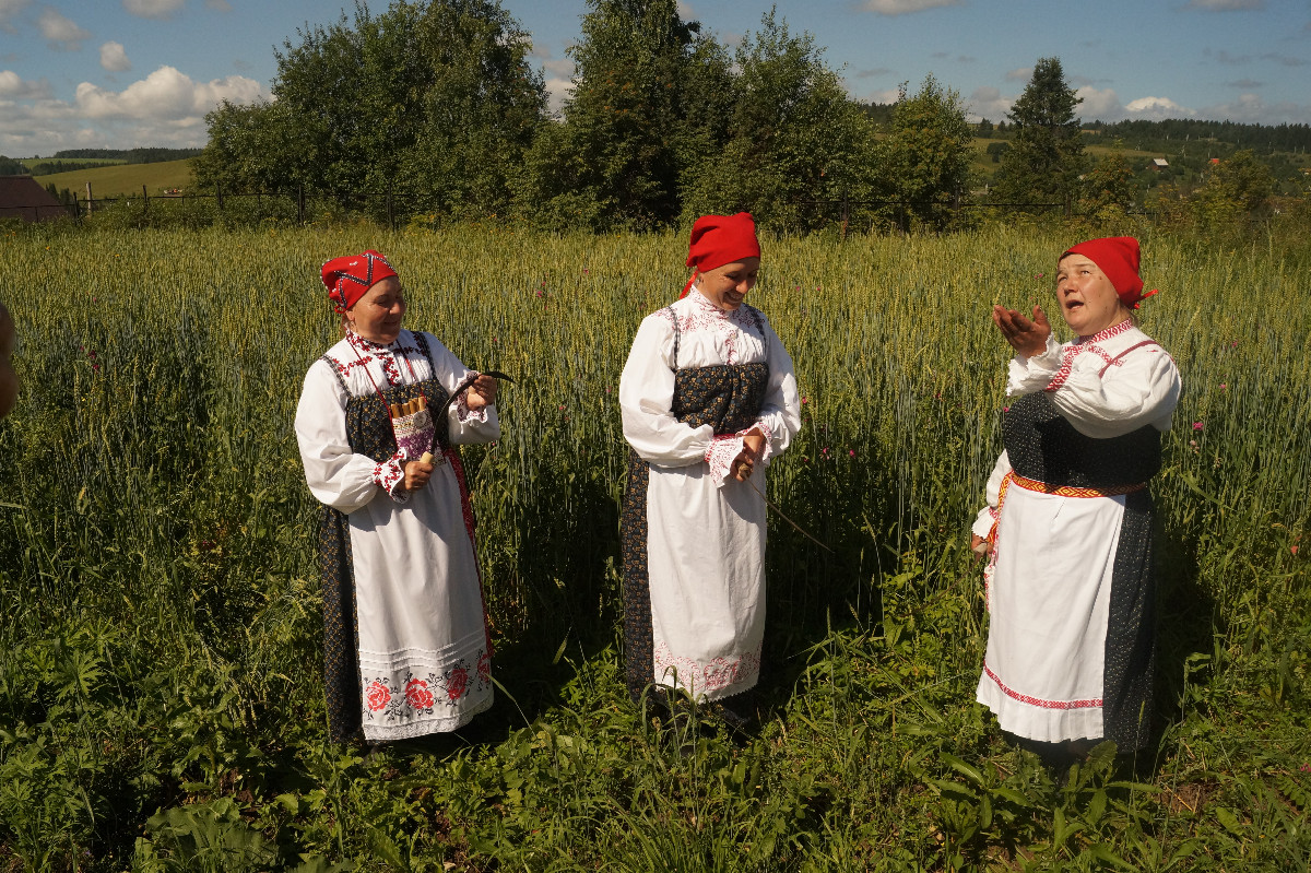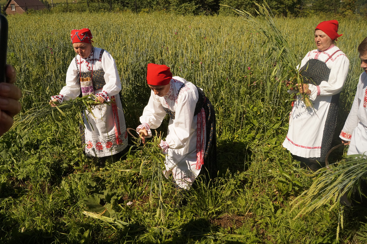 В этом году нам удалось посетить обряд первого снопа – это особый ритуал, с которого наши предки начинали жатву, сопровождается песнями и танцами.