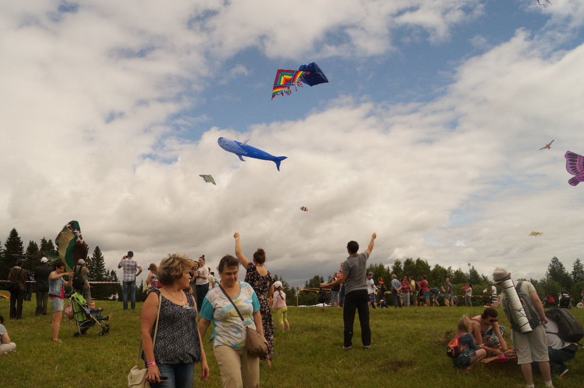 Великолепный голубой кит проплывающий в небесах, синхронно парящие змеи стёрали границы пространства и создавали неповторимую атмосферу сюрреализма.