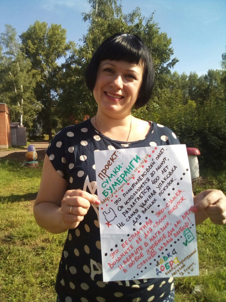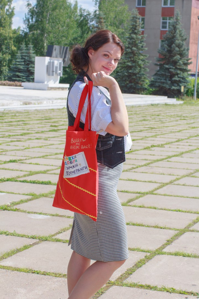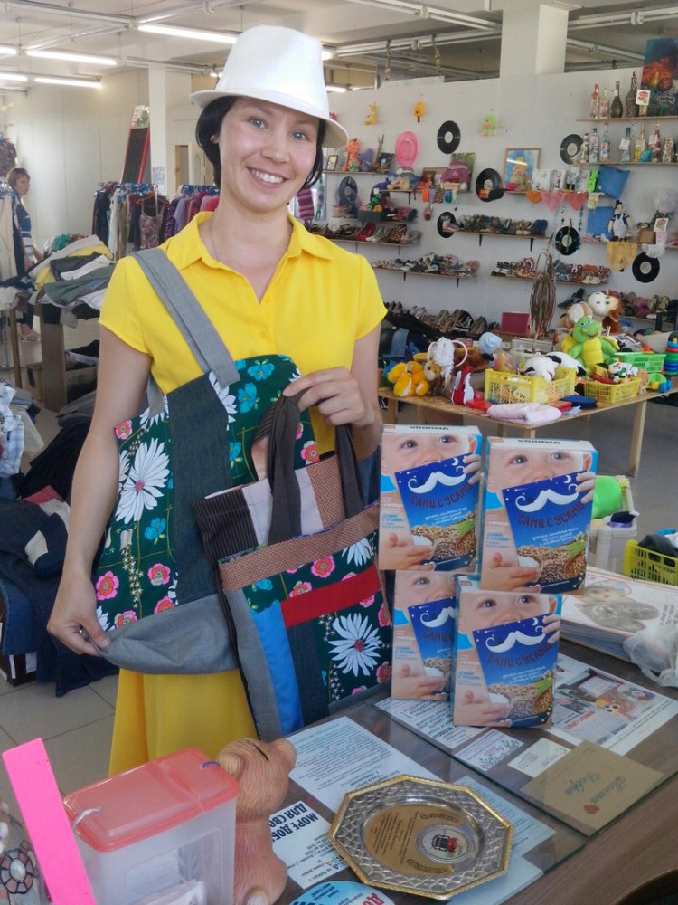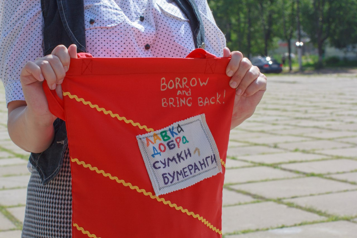 Ответ на вопрос нашёлся сам собой! Три месяца назад знакомая Яны Людижинской, руководителя магазина «Лавка добра», отправила ей запись из ижевской группы о сумках-бумерангах в соцсети и предложила раздавать подобные сумки в «Лавке добра». Наталья Санникова, так звали знакомую Яны, к тому моменту уже сшила семь сумок.