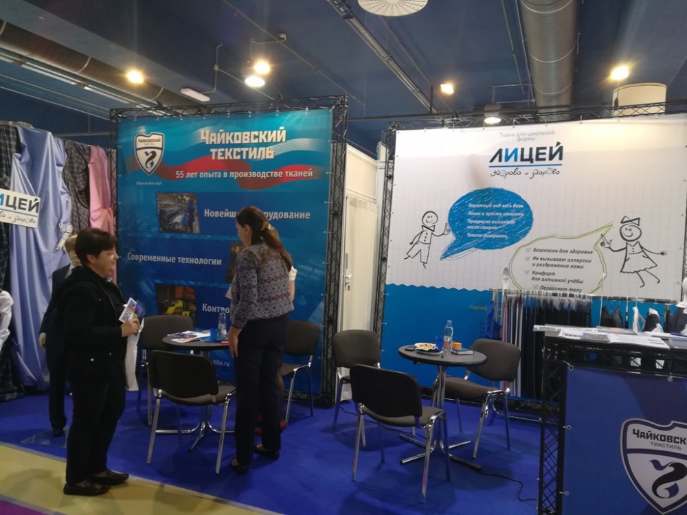 Коллекцию тканей для школьной формы «Лицей» - ткани костюмного и сорочечного ассортимента - представила на этой выставке компания «Чайковский текстиль», а готовая школьная форма из тканей компании демонстрировалась на стендах партнеров – ведущих швейных компаний России.
