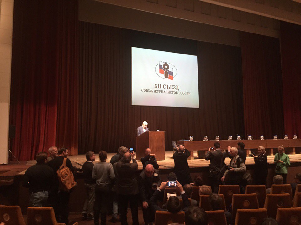 25 ноября в Москве, в большом зале Российской академии наук, прошёл XII съезд Союза журналистов России. В нём приняли участие 750 представителей региональных творческих союзов страны, в том числе 15 делегатов из Пермского края. Наш город Чайковский представлял руководитель еженедельной газеты «Частный Интерес» Евгений Михайлович Мартюшев.