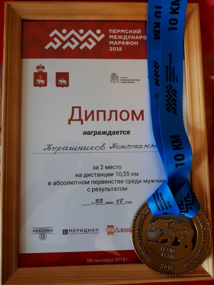 Кроме того, на пьедестал почёта поднимался ещё один чайковец - Константин Бурашников. Легкоатлет пришёл первым к финишу на дистанции 10 км в своей возрастной категории «Мужчины, 30-39 лет». В абсолютном зачёте Константин стал вторым.