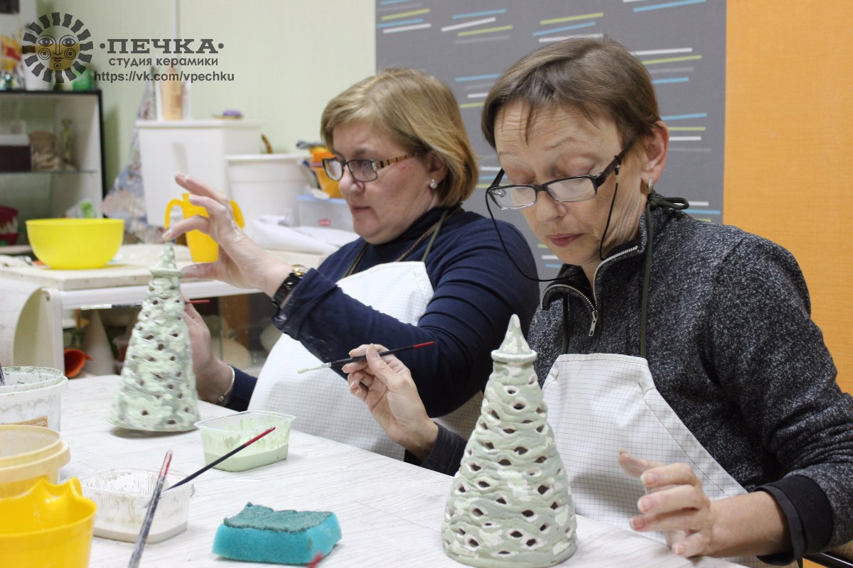 Есть мастер-классы для взрослых и семейные занятия. Сейчас проводится набор в группы по темам: «Рождественский переполох» и «Ёлка-светильник».