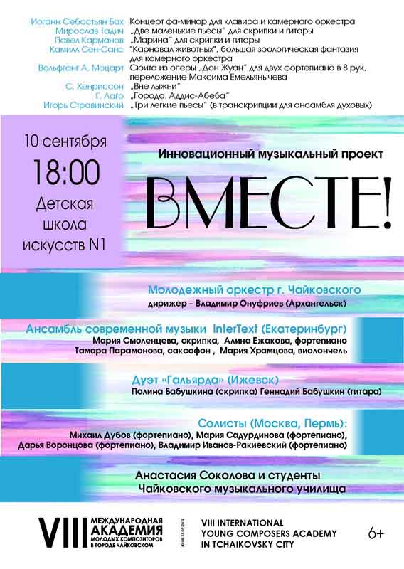 В понедельник, 10 сентября, в концертном зале Чайковской детской школы искусств №1 состоится инновационный музыкальный проект «Вместе».