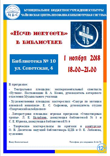 Напомним, 1 ноября акция «Ночь искусств» состоится в библиотеке №10 (ул. Советская, 4)