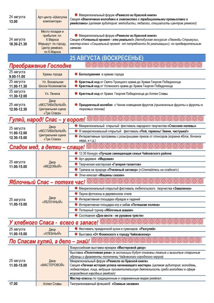 В субботу и воскресенье, 24 и 25 августа, в Чайковском на Аллее Славы по улице Ленина вновь пройдут «Спасские гуляния».