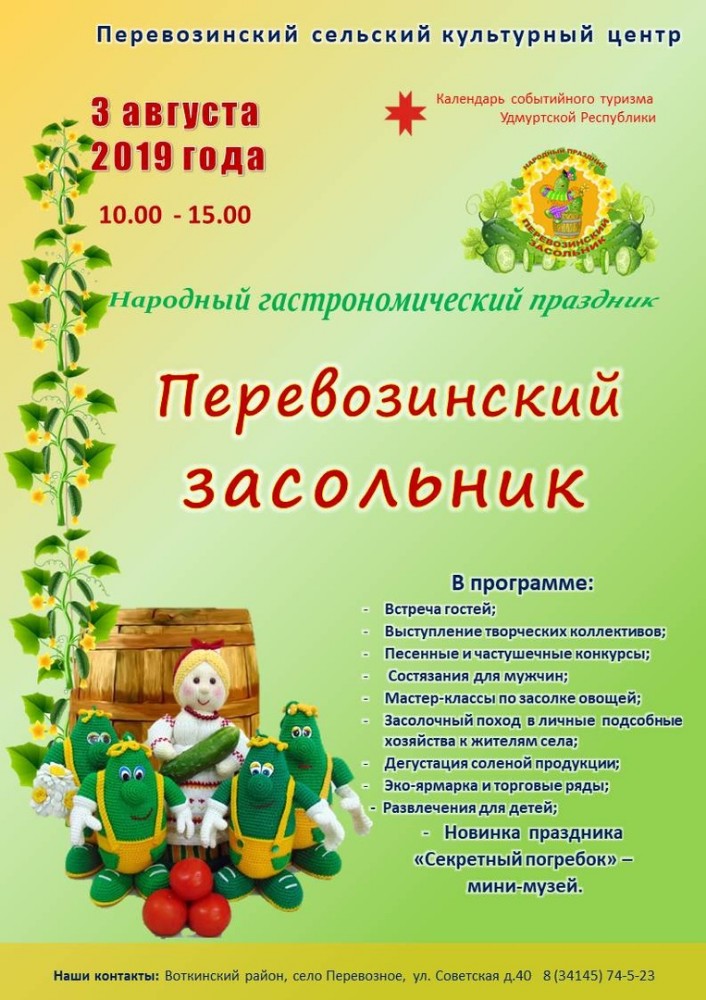 В Воткинском районе 3 августа в селе Перевозное состоится традиционный народный гастрономический праздник «Перевозинский засольник», сообщают организаторы праздничного мероприятия.
