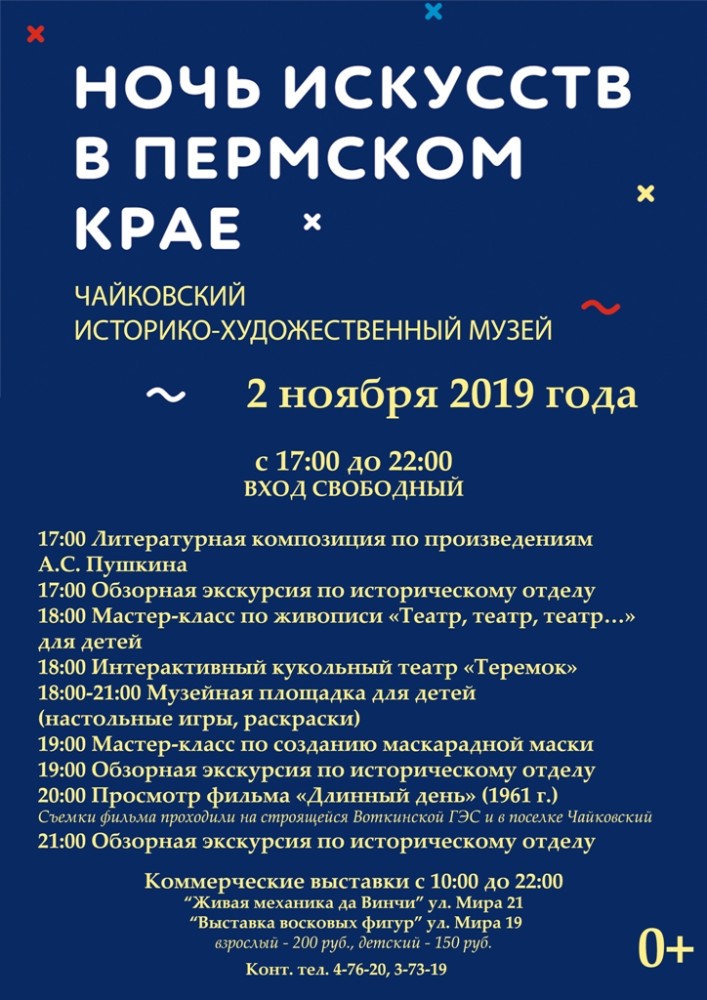 Чайковский историко-художественный музей приглашает жителей и гостей округа стать участниками ежегодного мероприятия «Ночь искусств» в субботу, 2 ноября.