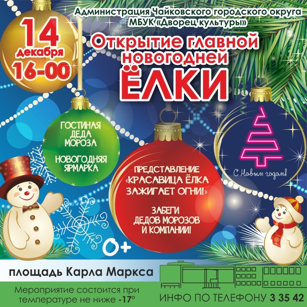 Уже завтра, 14 декабря, на площади Карла Маркса в Чайковском состоится открытие главной городской ёлки. В полдень начнёт работу Новогодняя ярмарка. Здесь можно будет выбрать ёлочные украшения, подарки для близких и друзей, отведать вкусные угощения и душистый чай.