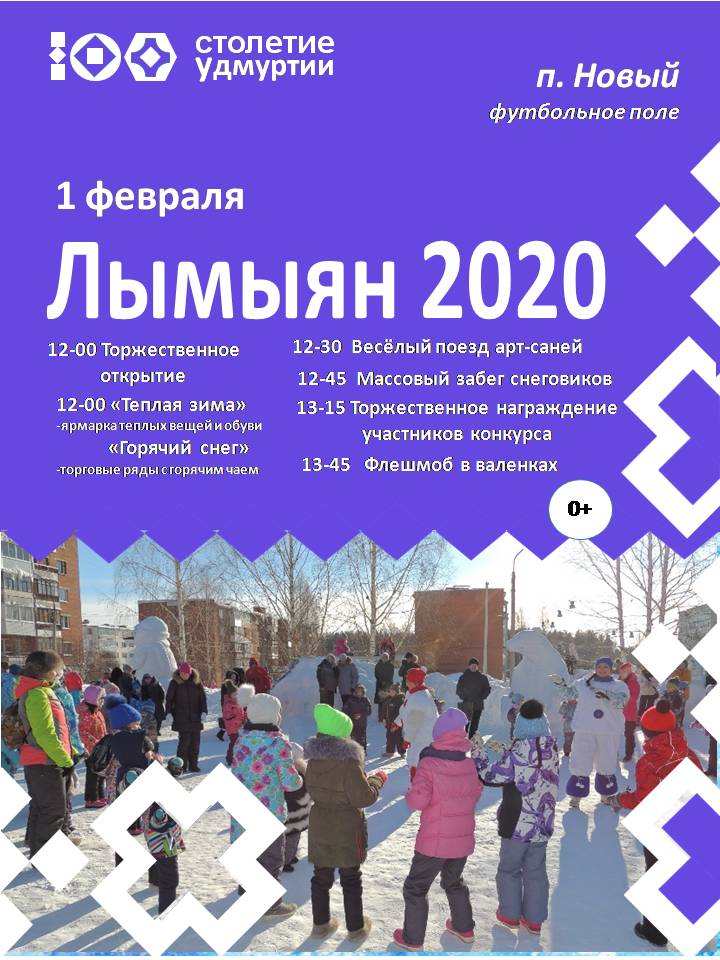 «Лымыян» - это традиционный конкурс снежных фигур и скульптур, который будет проводиться в посёлке Новый в этом году в седьмой раз. За всё время существования данный конкурс успел полюбиться не только новопоселковцам, но и жителям соседних городов – Воткинска, Ижевска и Чайковского.