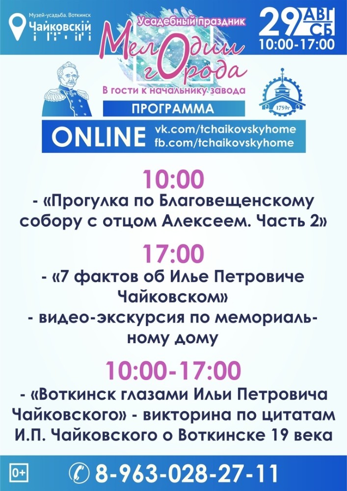 17:00 - «7 фактов об Илье Петровиче Чайковском» - видео-экскурсия по мемориальному дому;